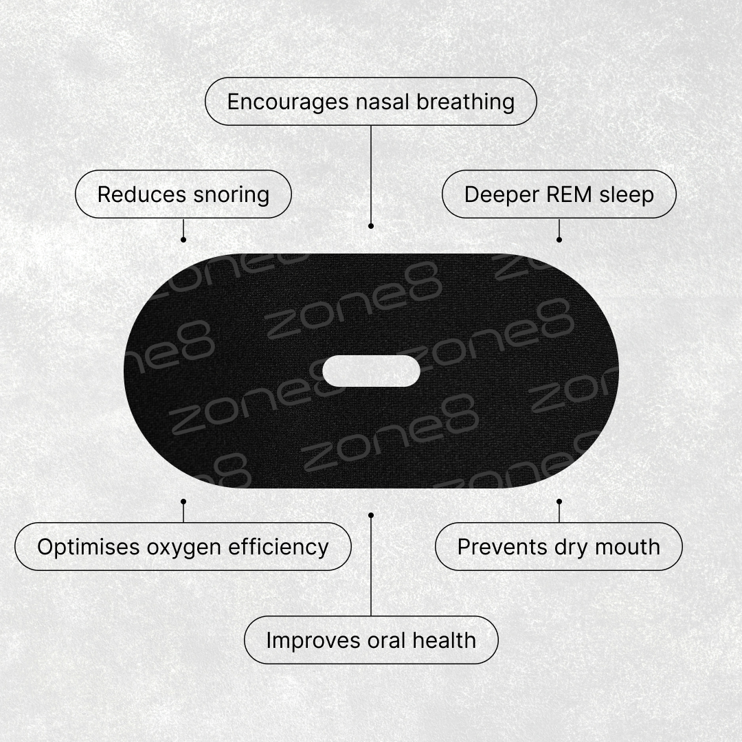 Zone8 Premium Mouth Strips are not a medical device and are not intended to diagnose, treat, cure, or prevent any medical condition. They are not a treatment for sleep apnoea or other sleep related breathing disorders. Consult a healthcare professional before use if you have any medical condition, breathing disorder, or sleep concern.