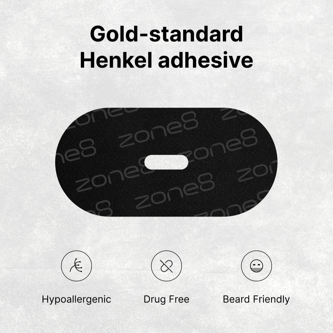Zone8 Premium Mouth Strips use gold standard Henkel, hypoallergenic adhesive, that’s drug-free and lab tested for skin safety.